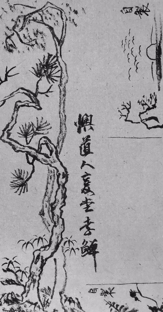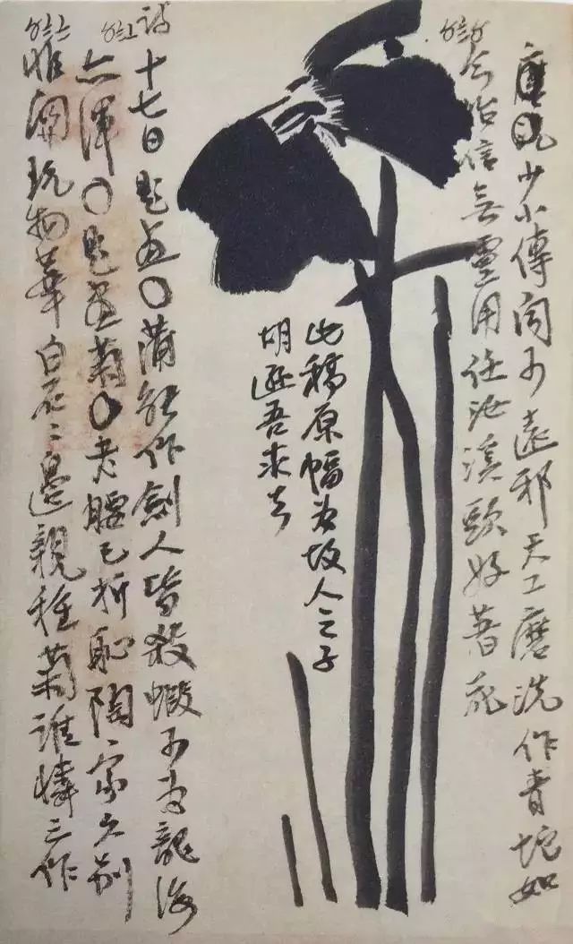 在一些综合的角落上他还注有好多这一类用笔时局的字样:笔墩向这边,笔尖向这边,顺笔,尖笔向这边横扫来,等等。